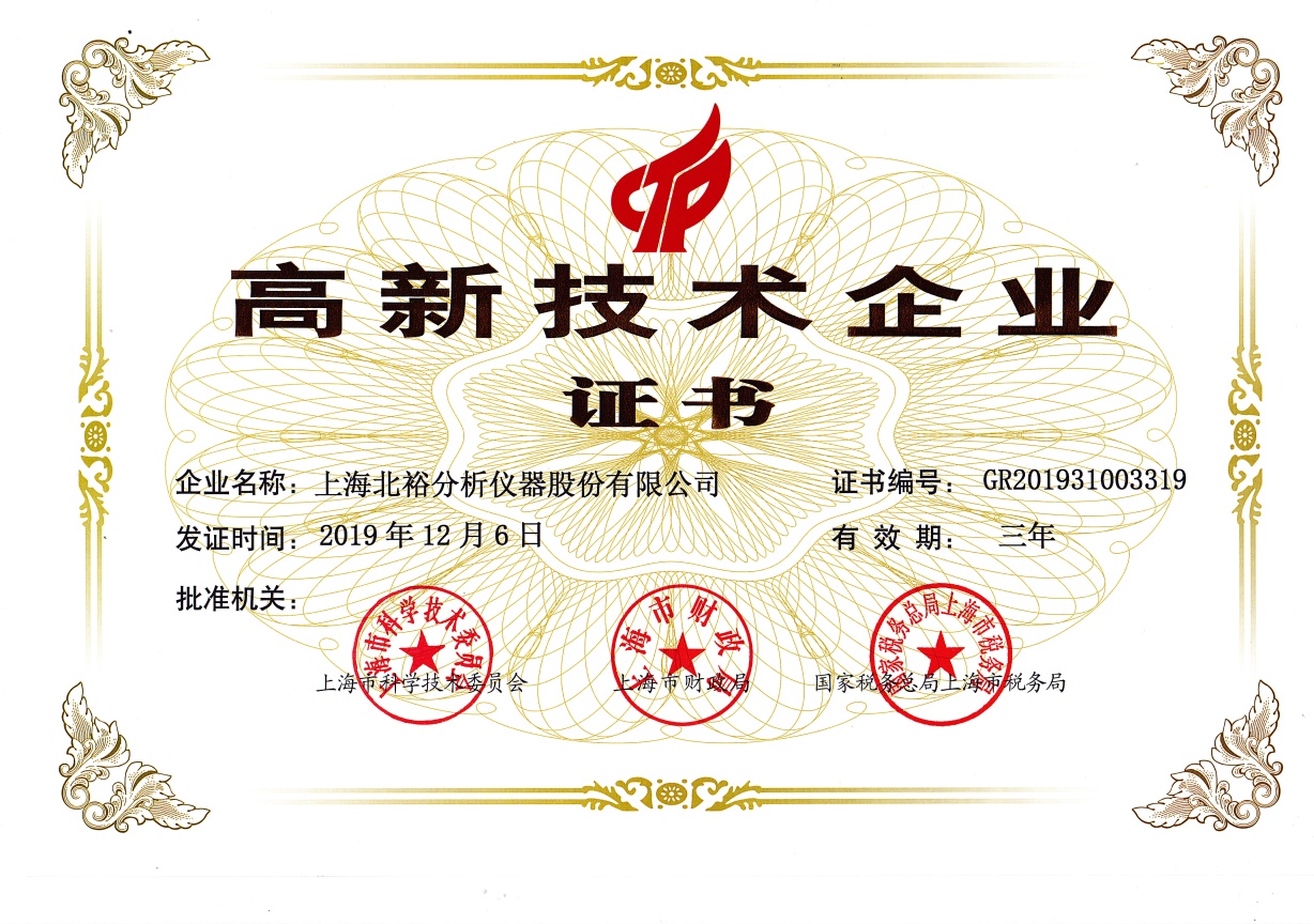 上海北裕分析儀器股份有限公司為國家高新技術企業,2016年于全國性資本市場“新三板”掛牌上市(股票代碼838239)。公司位于上海市寶山區滬太路4288號,生產經營面積超5000平方米。北裕儀器先后通過ISO9001質量管理體系認證、14001環(huán)境管理體系認證、OHSAS18001職業健康安全管理等5個體系認證,公司堅持“誠信優(yōu)質、大氣進取、創(chuàng)新專注”的理念,努力向著國內一流的高科技制造企業大步邁進。北裕儀器10余年的發(fā)展歷程中,獲得了國家和地方政府的大力支持和諸多榮譽。公司先后獲得全國和諧勞動關系創(chuàng)建示范企業、國家稅務總局“納稅A級”、科技部“科技型中小企業技術創(chuàng)新基金”、上海市“專精特新”認定、“3A信用等級”、“重合同、守信用單位”